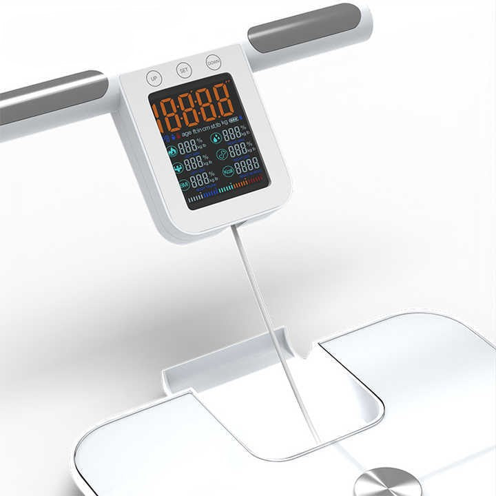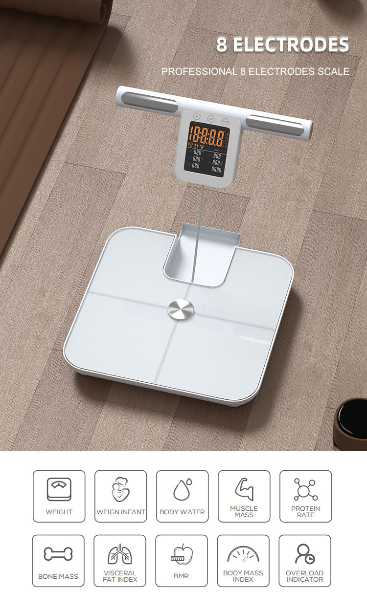 8-Elektroden-Vollkörperanalyse – Anders als einfache 4-Elektroden-Waagen, die nur den Unterkörper erfassen, nutzt dieses professionelle Design acht Kontaktpunkte für tiefere, genauere Messungen Ihrer gesamten Körperzusammensetzung.