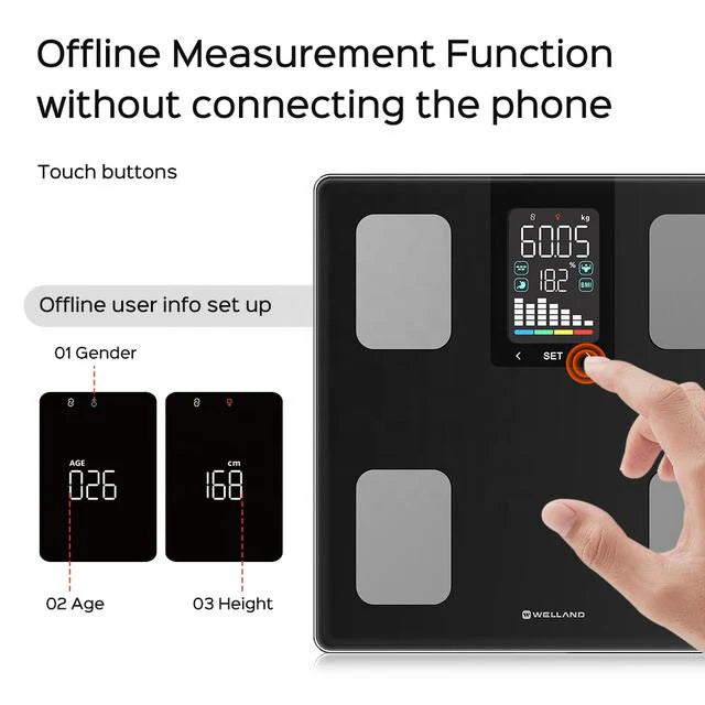 Egal, ob Sie auf ein Fitnessziel hinarbeiten, Ihre Gesundheit managen oder einfach achtsam verfolgen möchten, wie sich Ihr Körper im Laufe der Zeit verändert – diese elegante, präzise entwickelte Waage wird zu Ihrem täglichen Gesundheitsbegleiter. Sie liefert Klarheit, Einblicke und Motivation bei jedem Schritt.